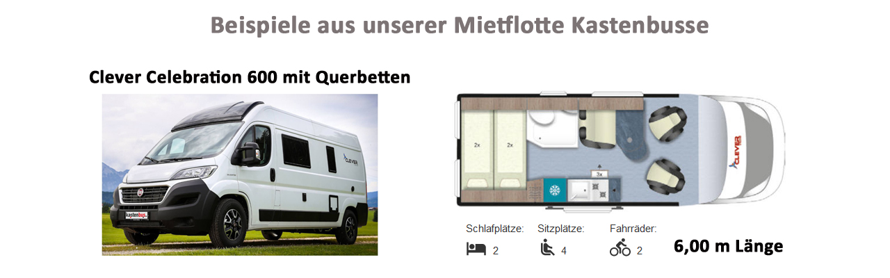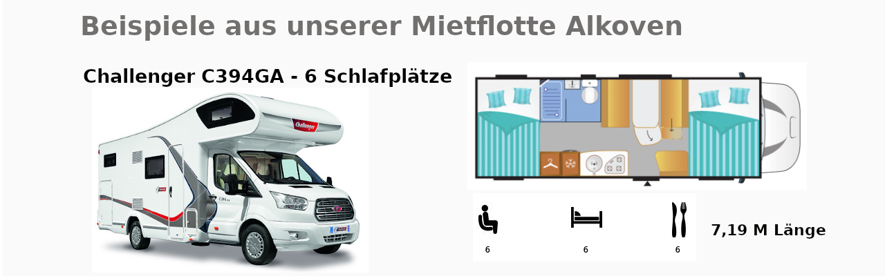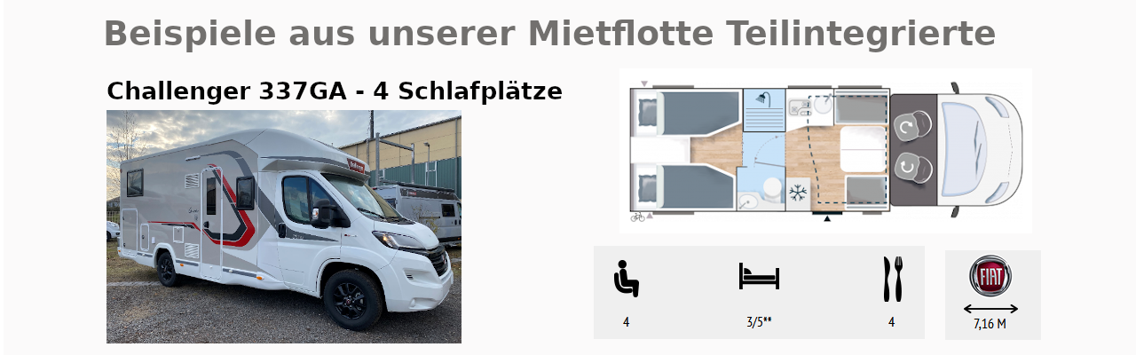 Fahrzeug: Eine Wohnmobilreservierung erfolgt immer auf eine Fahrzeugkategorie, niemals auf ein bestimmtes Fahrzeugmodell/Grundriss.